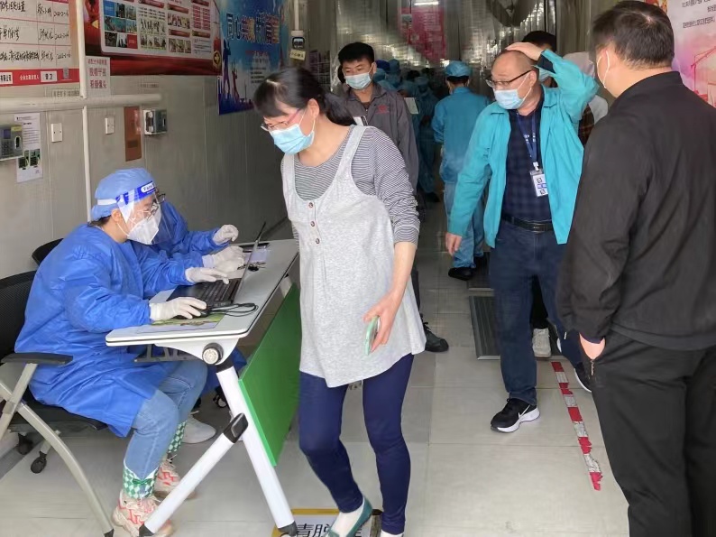 及時開展心理疏導,封控期間部分員工情緒起伏較大,公司每日開展有針對性的員工訪談和對話活動,為員工舒緩情緒、排憂解難。組織義工志愿者協助開展核酸檢測。按照“四天四檢”的要求,工會義工連續5天忙碌在宿舍和生產現場,協助做好核酸檢測工作。