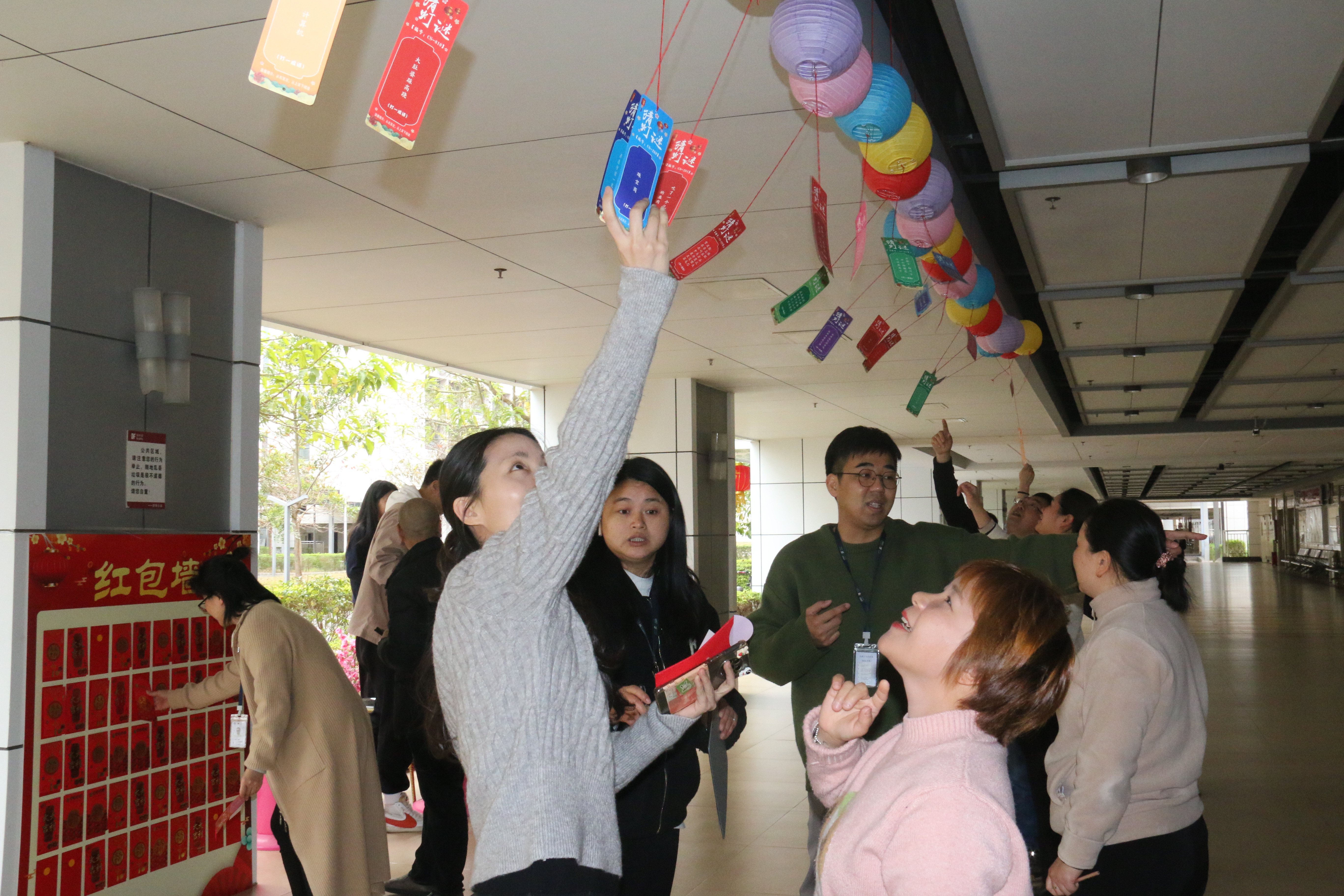 2月23日,深科技總部大堂流光溢彩,春味濃郁,一場熱鬧喜慶的元宵燈謎會精彩呈現。公司黨委書記、董事長韓宗遠,黨委委員、高級副總裁周庚申,高級副總裁于化榮,黨委委員、高級副總裁莫尚云,監事會主席肖澗毅,黨委委員、總裁助理曹岷、周浩、彭秧,董事會秘書鐘彥及工會副主席邱勝來到活動現場與廣大員工一起猜燈謎、賞花燈、玩游戲,共同慶祝元宵佳節。中國電子專職董事、深科技董事劉漢清應邀參加。